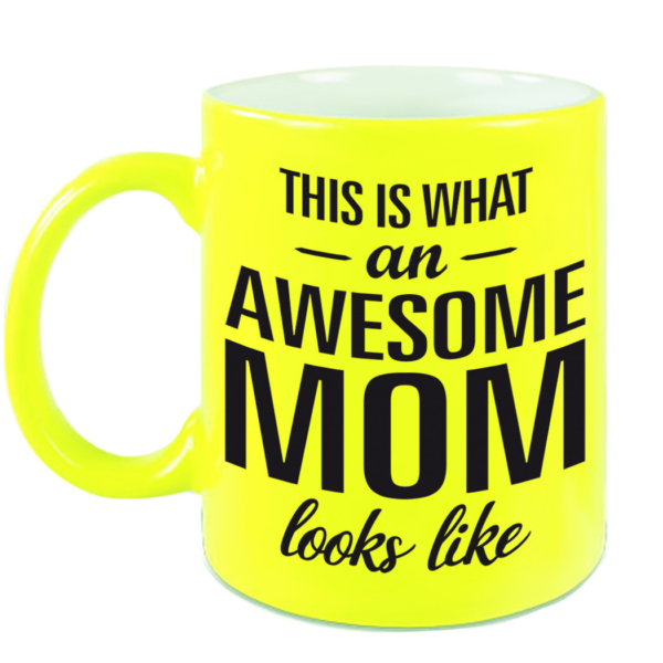 Awesome mom cadeau mok / beker neon geel voor Moederdag 330 ml