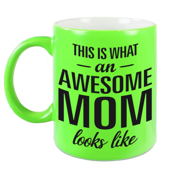 Awesome mom cadeau mok / beker neon groen voor Moederdag 330 ml