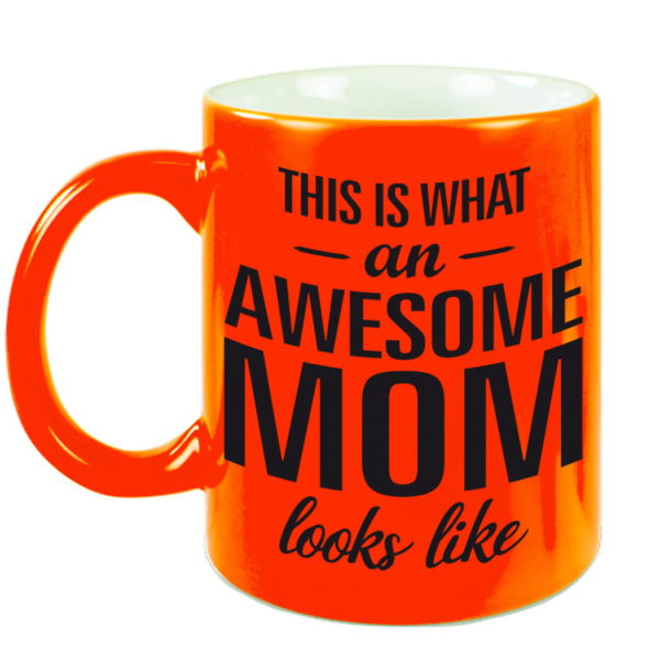 Awesome mom cadeau mok / beker neon oranje voor Moederdag 330 ml