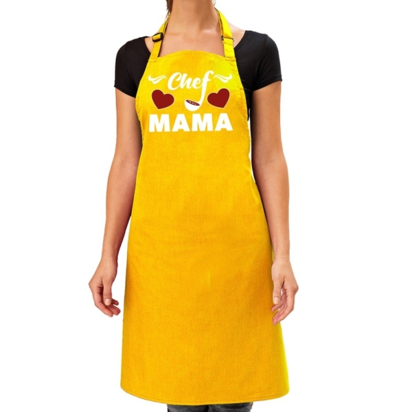Keukenschort Chef mama – geel – voor dames – Moederdag – bbq schort