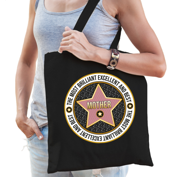 Cadeau tas voor mother/moeder – zwart – katoen – 42 x 38 cm – verjaardag – moederdag – mama