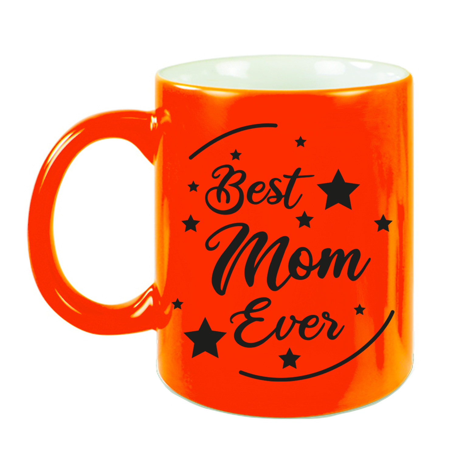 Leuke cadeau mok best mom ever neon oranje, 330 ml. Deze mok is bedrukt met de tekst: best mom ever. Verras tante met een leuke mok / beker voor haar verjaardag, Moederdag of gewoon omdat ze het verdiend heeft! De mok heeft een inhoud van c.a. 330 ml. Om de bedrukking langer mooi te houden kunt u de beker het beste met de hand wassen en niet in de vaatwasser.