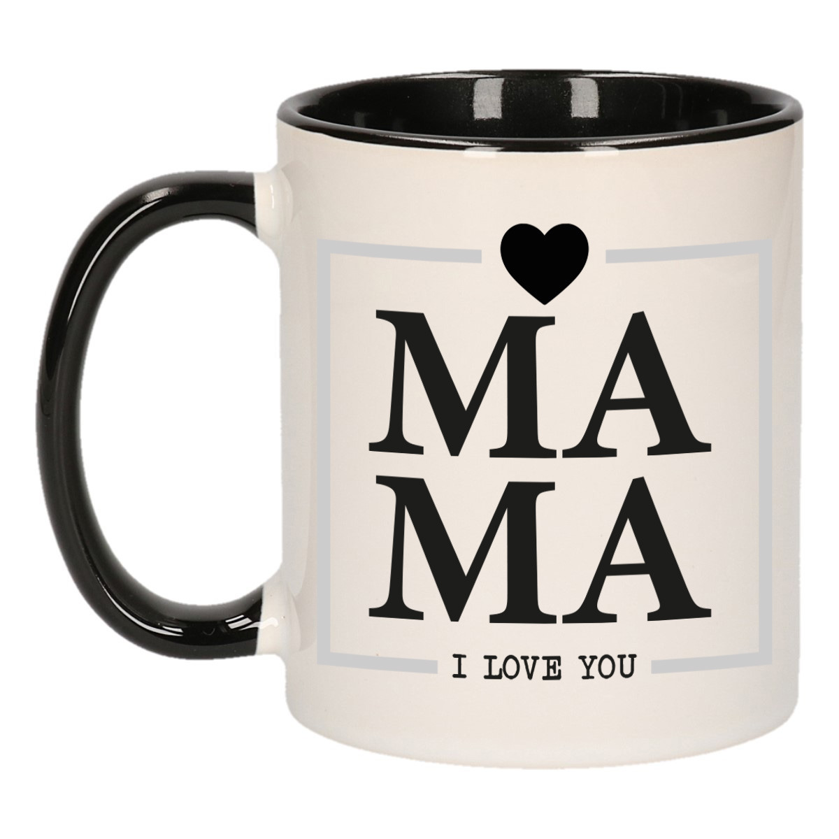 Cadeau koffie/thee mok voor mama – zwart/grijs – ik hou van jou – keramiek – Moederdag