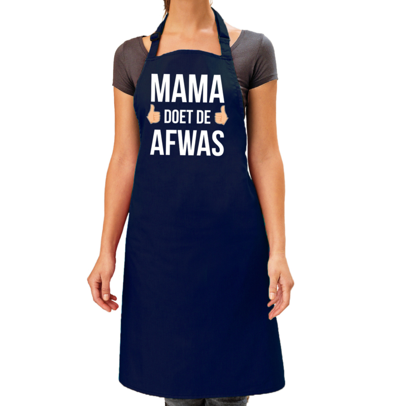Mama doet de afwas cadeau katoenen schort blauw voor dames