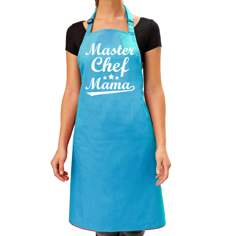 Moederdag cadeau schort – master chef mama – blauw – keukenschort – verjaardag – barbecue/BBQ