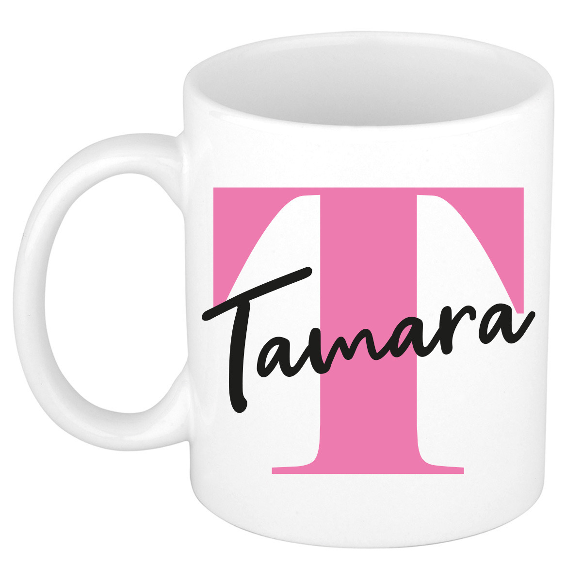 Verras Tamara met haar nieuwe mok. Heb jij een collega of vriendin die Tamara heet? Geef haar deze leuke naam beker cadeau! Deze mok is bedrukt met een roze eerste letter van de voornaam en de naam: Tamara.