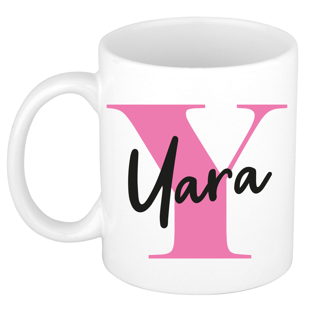 Verras Yara met haar nieuwe mok. Heb jij een collega of vriendin die Yara heet? Geef haar deze leuke naam beker cadeau! Deze mok is bedrukt met een roze eerste letter van de voornaam en de naam: Yara.