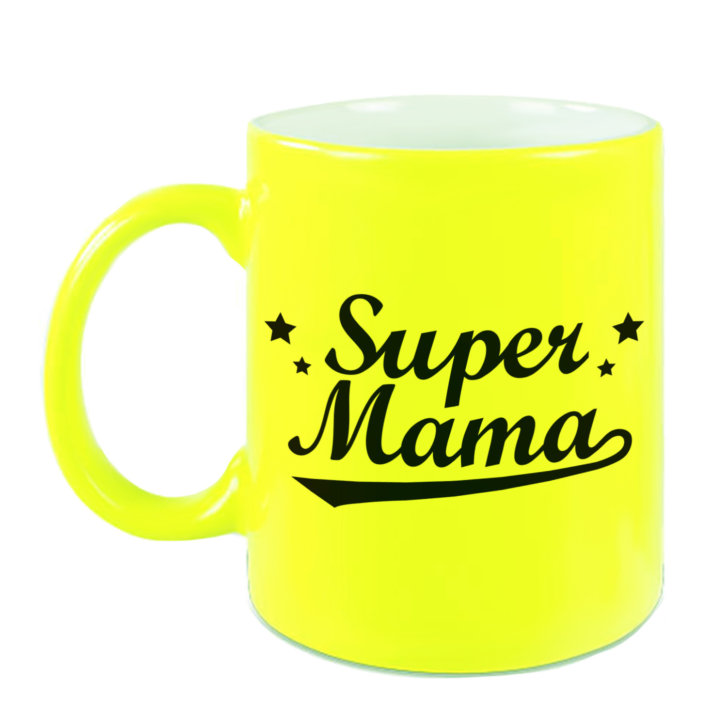 Super mama mok / beker neon geel voor Moederdag/ verjaardag 330 ml
