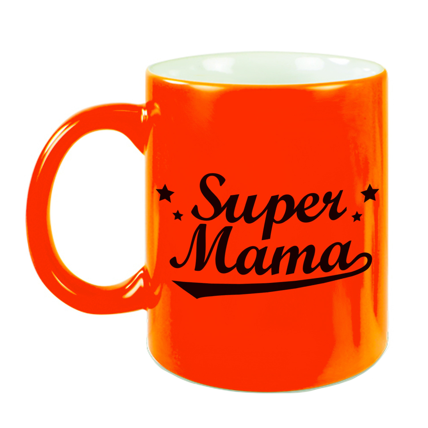 Super mama mok / beker neon oranje voor Moederdag/ verjaardag 330 ml
