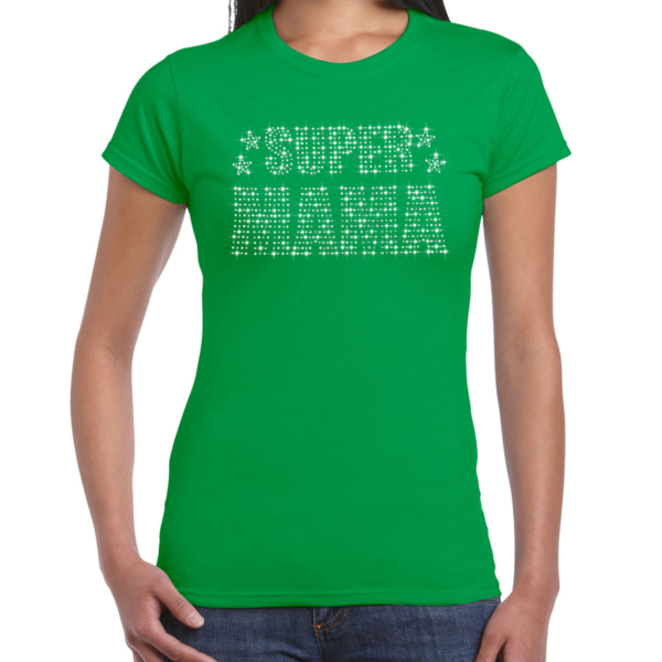 Glitter Super Mama t-shirt groen Moederdag cadeau rhinestones steentjes voor dames
