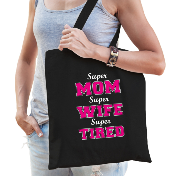 Super mom wife tired Katoenen moeder cadeau tasje zwart voor dames