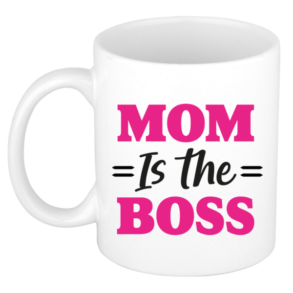 Cadeau koffie/thee mok mama – wit/roze – mam is de baas – 300 ml – Moederdag