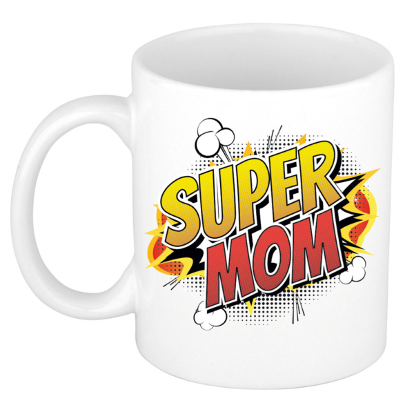 Super mom cadeau mok / beker wit pop-art / cartoon stijl 300 ml
