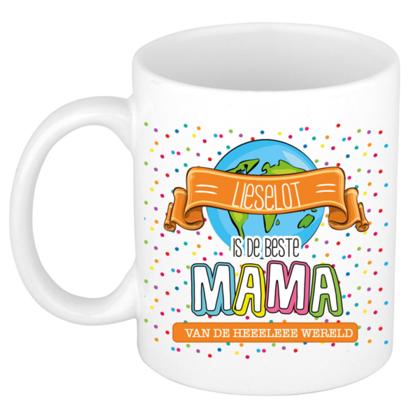 Naam mok mama Lieselot – wit – de beste – keramiek – 300 ml – Moederdag/verjaardag