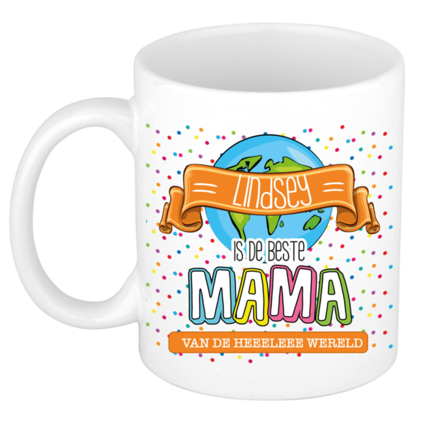 Naam mok mama Lindsey – wit – de beste – keramiek – 300 ml – Moederdag/verjaardag