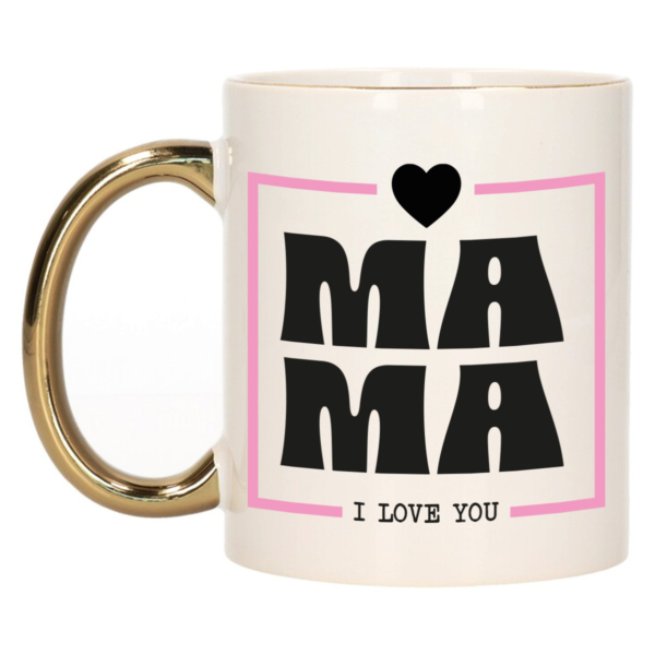 Cadeau koffie/thee mok voor mama – wit/roze – ik hou van jou – gouden oor – Moederdag