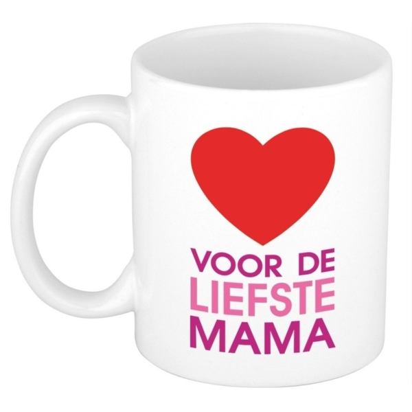Cadeau koffie/thee mok – de beste mama voor altijd – hartjes – pastel – 300 ml – keramiek